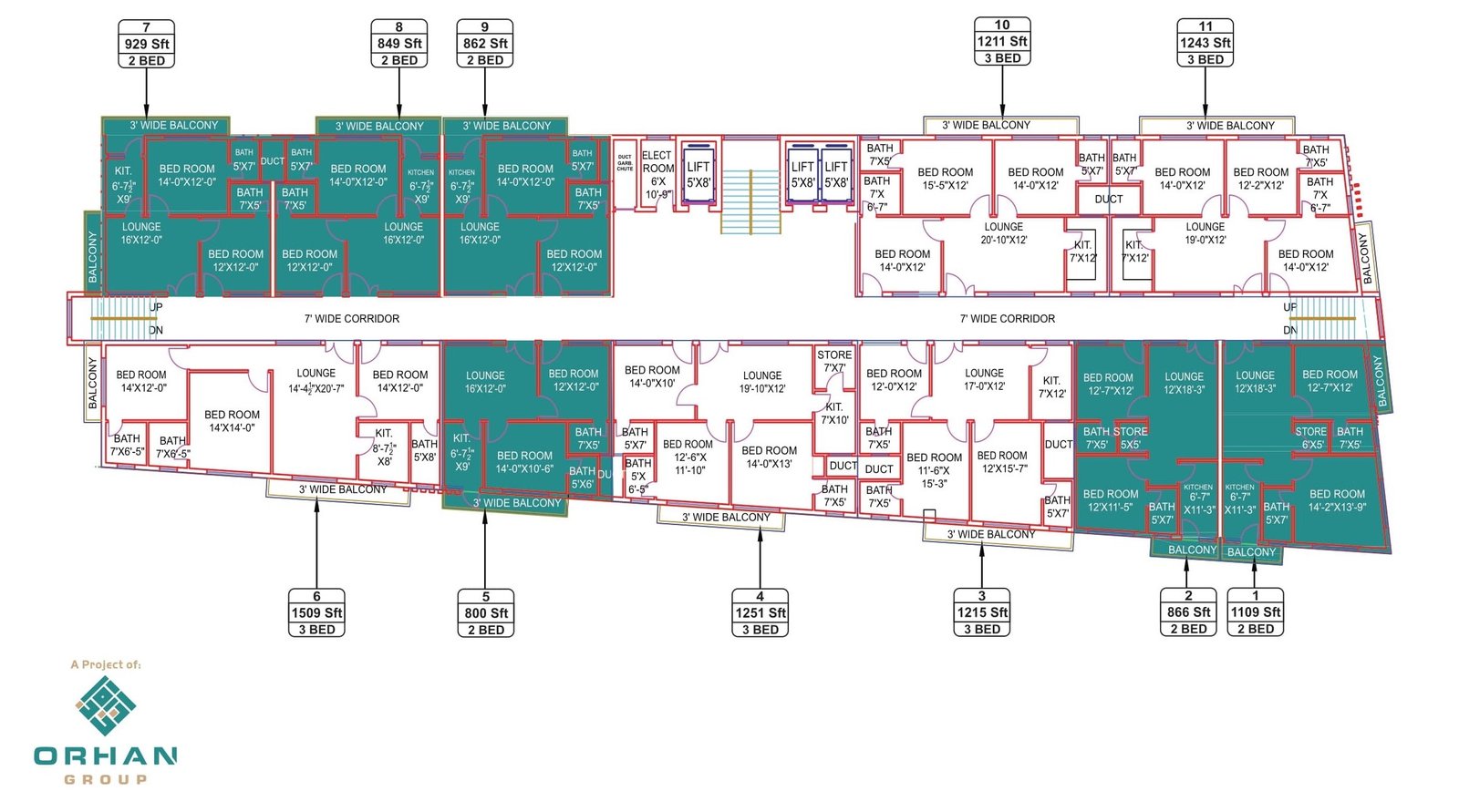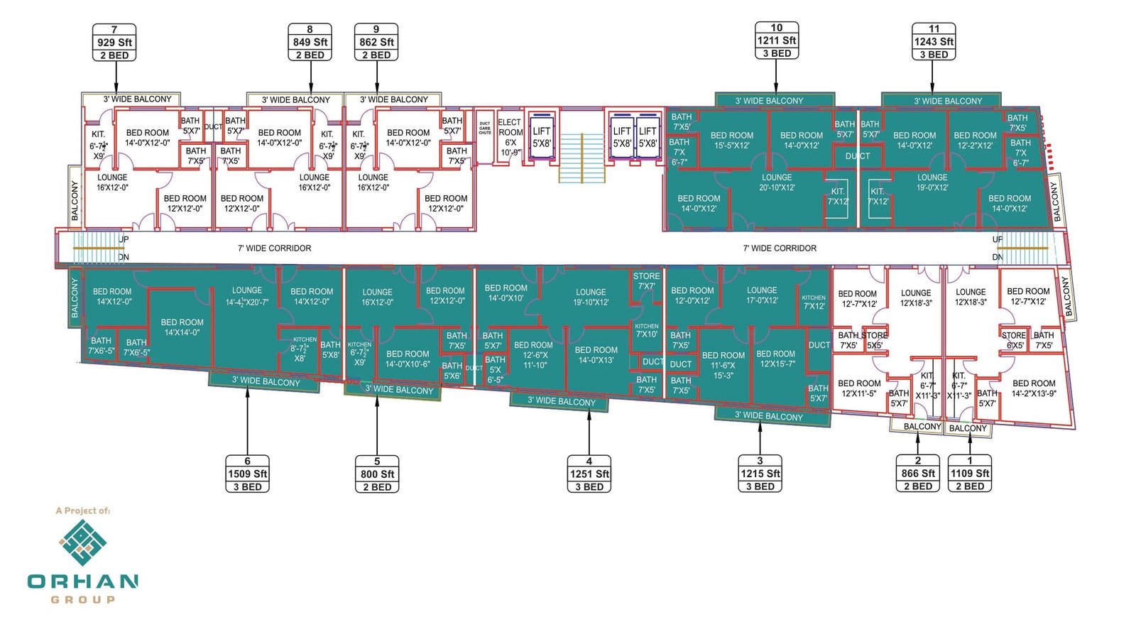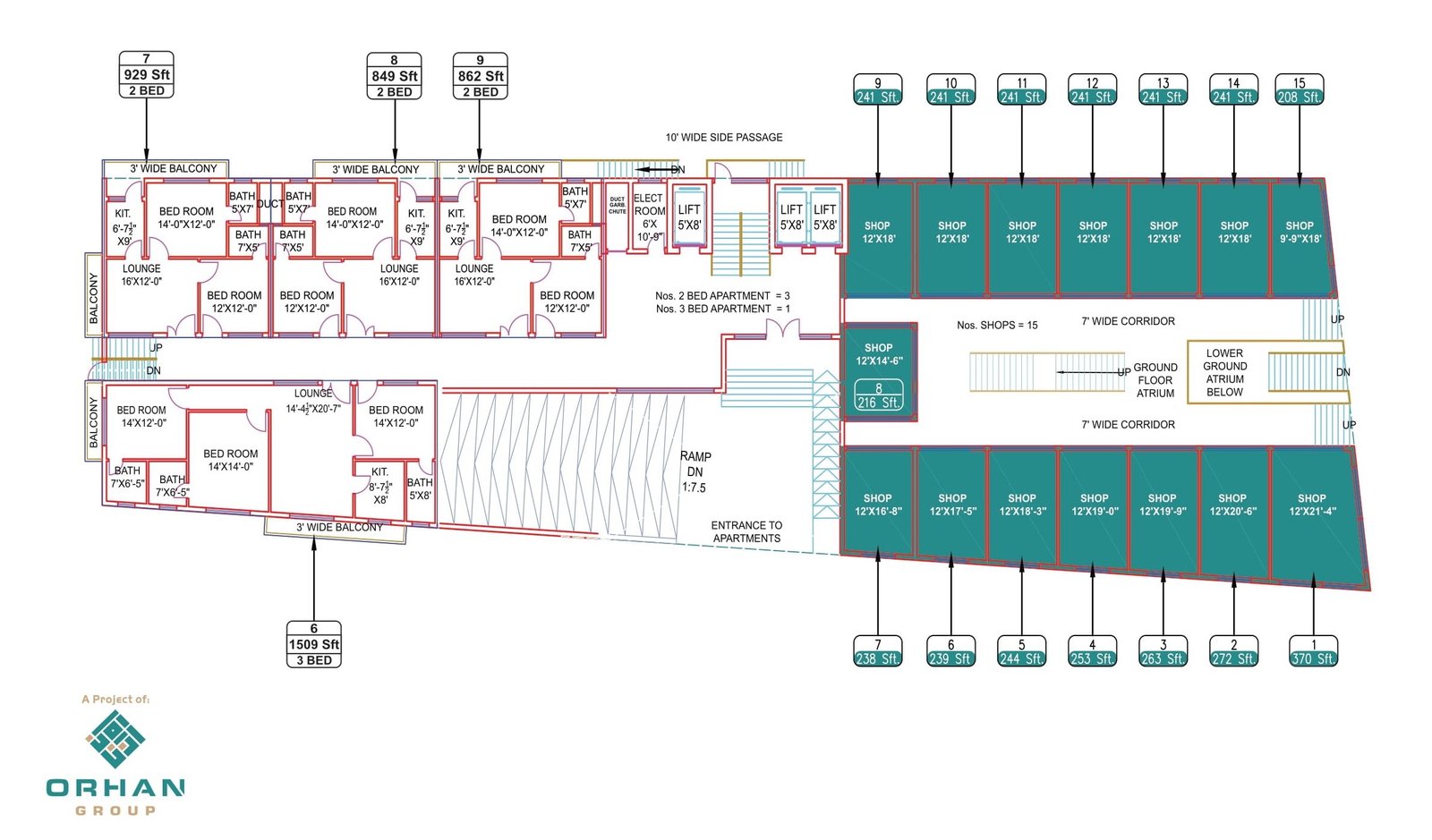 The main feature of our project is “location” our location diversifies our presence from other projects as our location is accessible from all leading areas of Peshawar. Since we are in the heart of Peshawar and you know we are at almost average 5-7 min drive from everywhere, Hayatabad, university town, ring road, airport, sadder cantt, schools, Peshawar University etc. Due to the fact of our prime location and amenities alongside, it is certainly worthy at ORHAN TOWER. Our innovative construction. Well-designed features, and elegant accommodation are rarely found.FLOOR PLAN